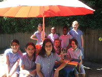Classes have been coming to the library this week and taking advantage of the beautiful weather we are having to enjoy the outside space.